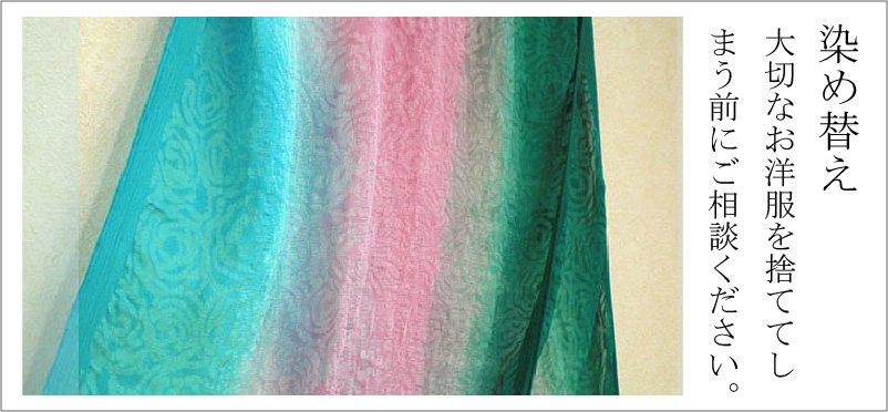 誰にでも着心地やデザインをはじめ手放したくない大切な思い出のある衣類があります。そんな時は手放してしまう前に”そめ宗”に是非ご相談下さい。色落ちの心配もございません。